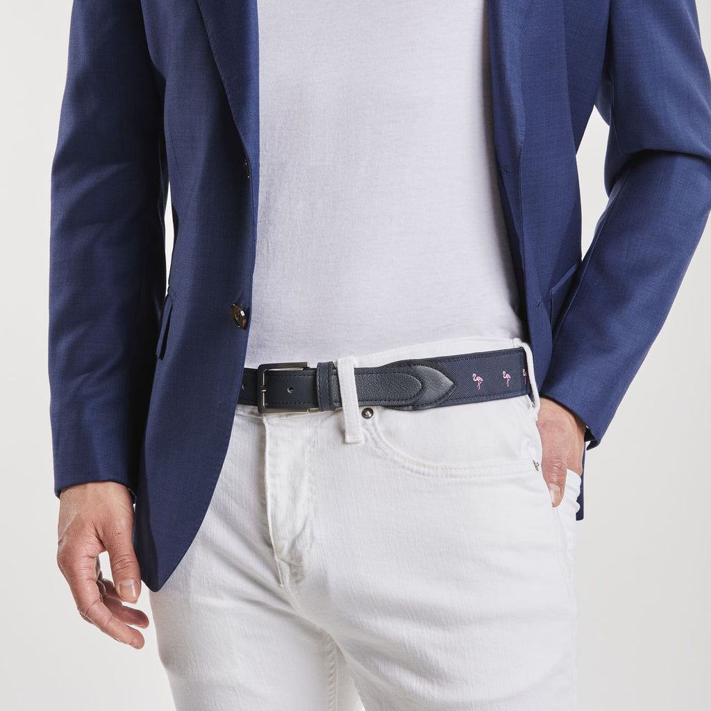 For casual elegance in everyday accessories, the Dark-Blue Pink Flamingo Men's belt has you ready for any occasion.